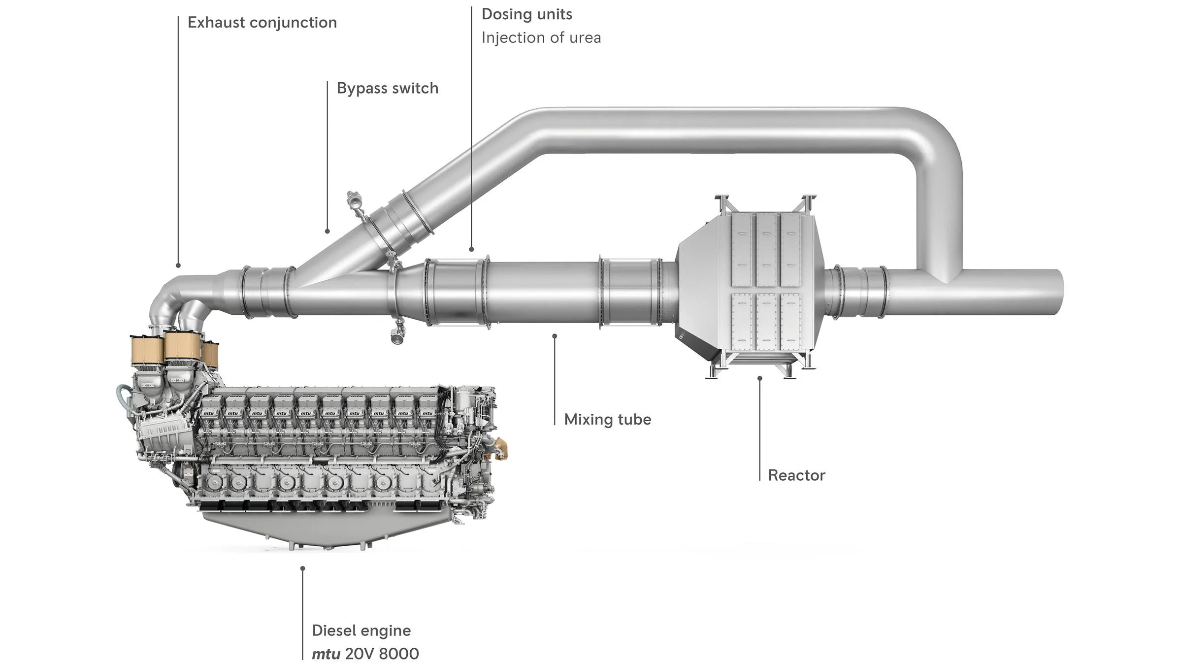 mtu Series 1163 and 8000 engines are available with SCR systems for compliance with IMO III emission limits